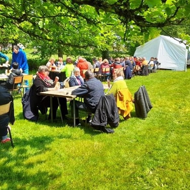 Et en cet automne 2024, une campagne de financement participatif a été lancée sur différents supports afin de permettre la restauration de la bannière de saint Éman, emblème pour notre petit village de 98 habitants, afin qu’il ne devienne amnésique et ne perde son âme.